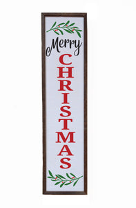 Merry Christmas Wreath Christmas Signs. All our signs are build into a wooden box frame with a rustic touch. Signs are hung directly off the frame.