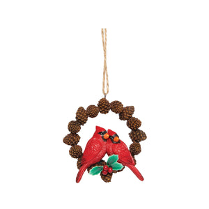 Christmas Cardinal Bird & Pinecone Wreath Ornament