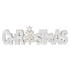 Elevate your winter and Christmas decor with the charming VHC Brands Tropical Wood CHRISTMAS Carved Wooden Sign. Crafted from tropical wood, this exquisite sign features a cutout design of the word "Christmas" adorned with a festive tree motif, adding a touch of seasonal elegance to your tabletops and shelves. Measuring 15 inches in length, 4.25 inches in width, and 1 inch in height, it serves as a captivating centerpiece that captures the essence of farmhouse and country-inspired Christmas themes. The light wood tan and light creme color palette of this carved wooden sign complements a variety of interior decor styles, infusing your home with rustic charm and warmth. Its farmhouse Christmas design, coupled with carved graphics and a distressed appearance, exudes a cozy ambiance that invites comfort and joy into any space. Whether placed in the dining room, entryway, kitchen, or living room, this sign serves as a delightful accent piece that celebrates the spirit of the season. Maintaining the pristine condit