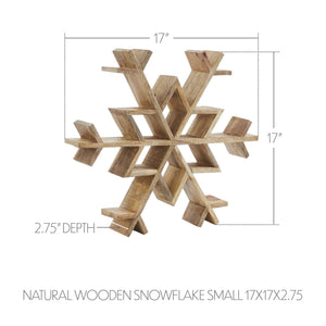 Enhance your winter decor with the VHC Brands Wooden Snowflake Small, a charming piece that brings rustic warmth and festive style to any space. Measuring 17x17 inches, this wooden snowflake features a delicate outline design crafted from tropical wood in a natural light tan shade. Its solid color and stained finish highlight the wood's natural beauty, making it an ideal accent for farmhouse, primitive, or rustic winter themes. Versatile and lightweight, this snowflake can be displayed on a wall as a standout focal point or rested on a shelf for subtle seasonal flair. Its sturdy yet manageable design allows for easy placement in a variety of settings, from mantels and entryways to tabletops and windowsills. The simple, natural tones blend seamlessly with other holiday decorations and seasonal color schemes. Perfect for any room-bathroom, bedroom, dining room, entryway, kitchen, or living room-the Wooden Snowflake Small adds cozy charm and understated elegance to your winter decor. Easy to maintain, simply wip